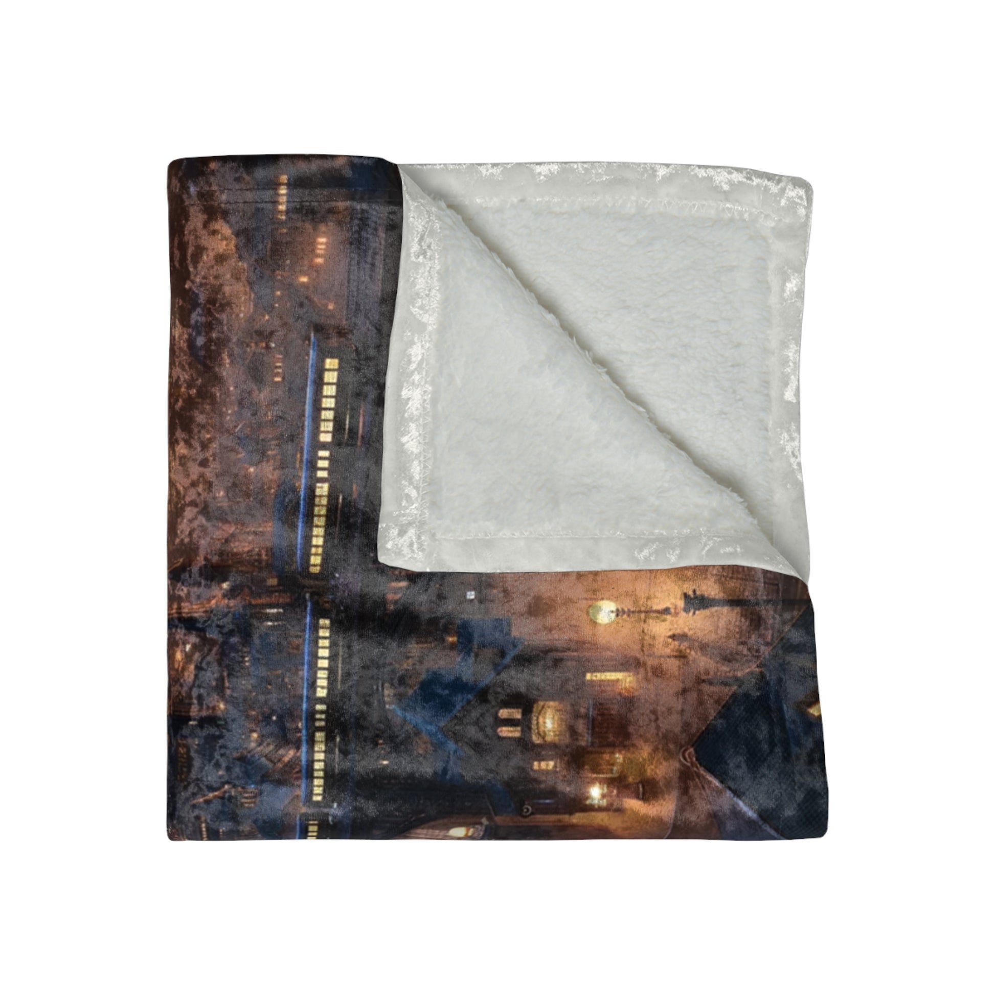 Super soft, super comfy—this crushed velvet blanket with an original custom design will be the perfect addition to the living room couch. It's made from high-quality, durable 100% polyester fabric with zig-zag stitches on its edges.