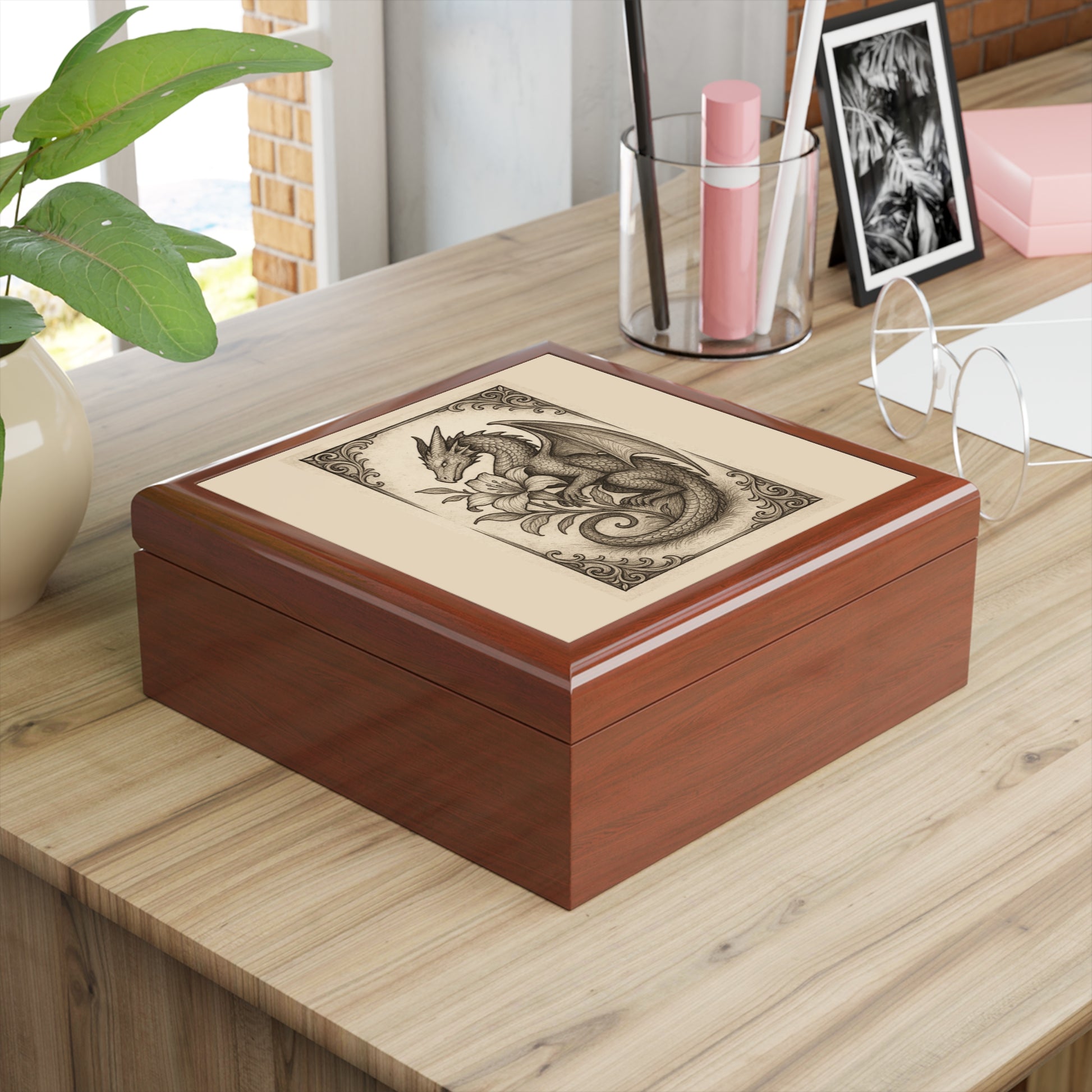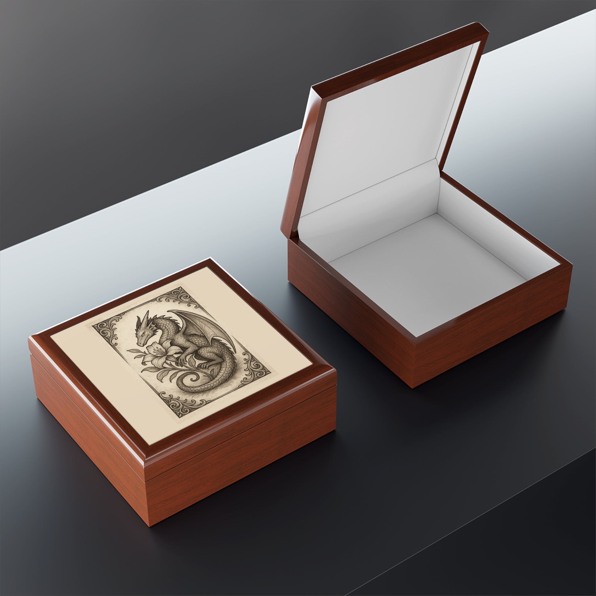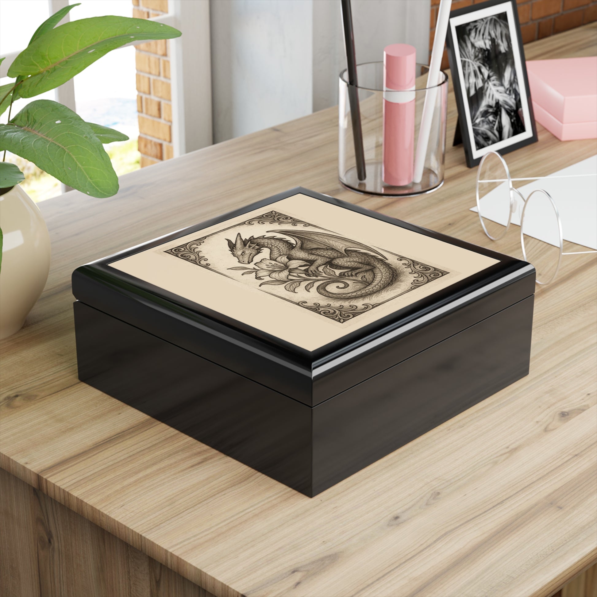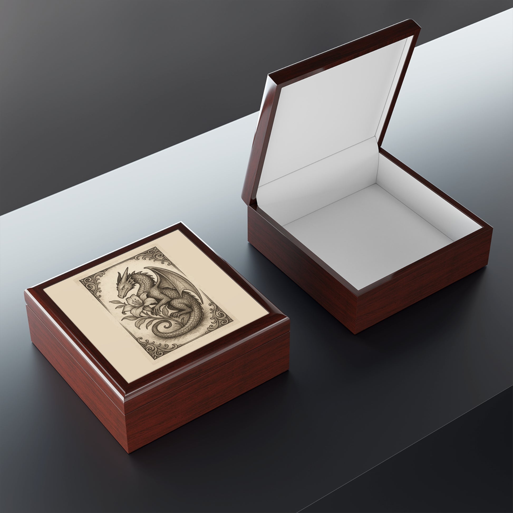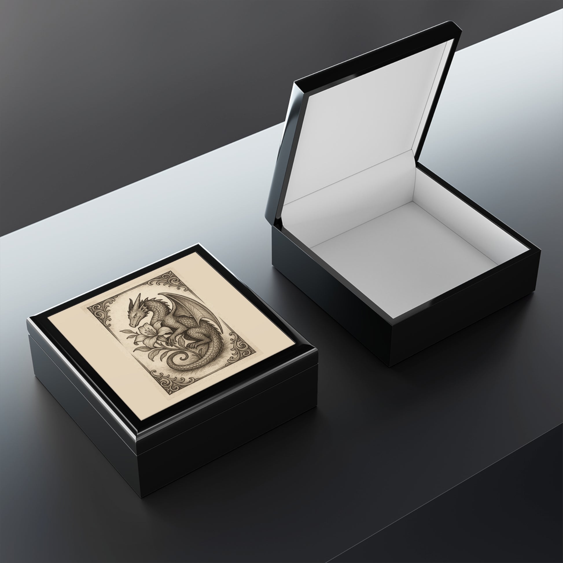 Discover the perfect blend of elegance and functionality with this stunning jewelry box. Its intricate design features a captivating dragon motif, making it a unique addition to any collection. The glossy finish in your choice of three colors adds a touch of sophistication, while the soft felt interior gently cradles your treasured items. This jewelry box is an ideal gift for lovers of fantasy art, jewelry enthusiasts, or anyone who appreciates craftsmanship. Perfect for occasions like birthdays, anniversaries, or the upcoming holiday season, it serves as a beautiful and practical storage solution for your most cherished accessories. Bring a touch of whimsy and charm to your space, whether on a dresser, vanity, or desk!