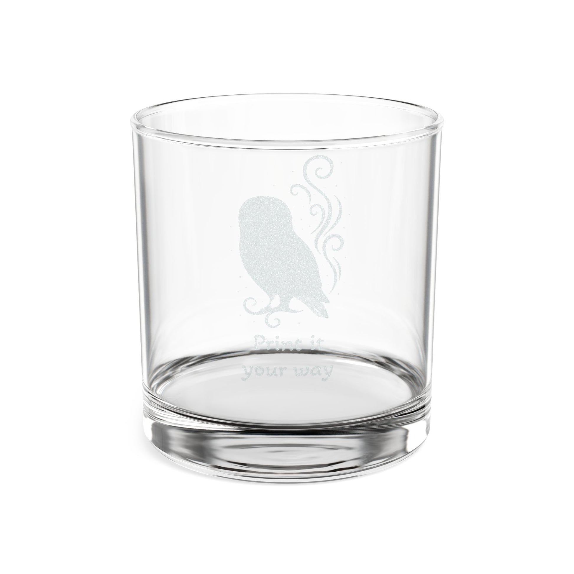A low, solid whiskey glass with a subtle engraved motif that brings quiet character to evening rituals. The clear glass showcases the amber hues of bourbon or scotch while the engraved owl silhouette and gentle scrollwork add a handcrafted, intimate touch. It sits heavy in the hand for slow sips and conversation — a companion for nights of reflection, small celebrations, or relaxed company. Dishwasher-safe and sized for a generous pour, it blends everyday practicality with a bit of thoughtful charm.