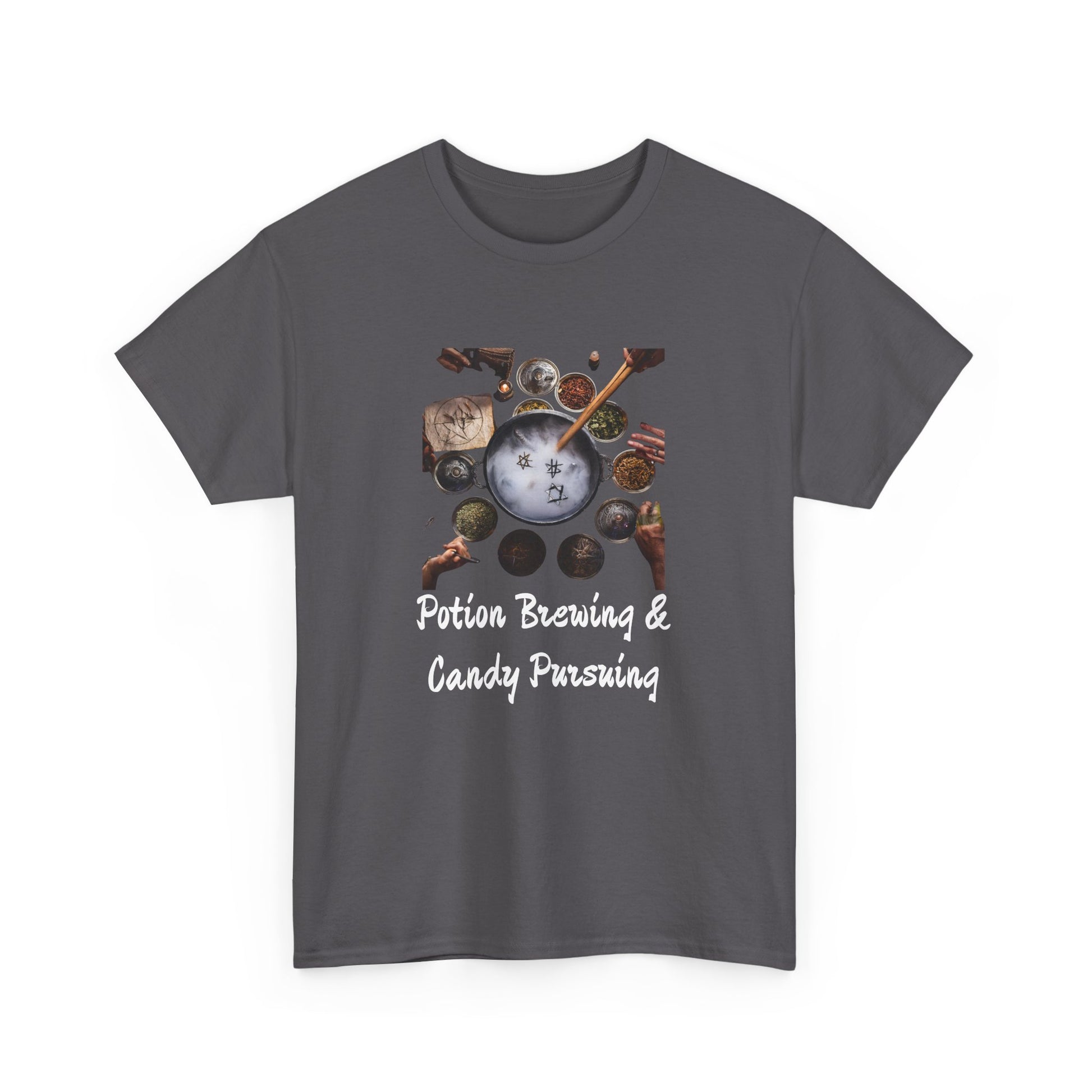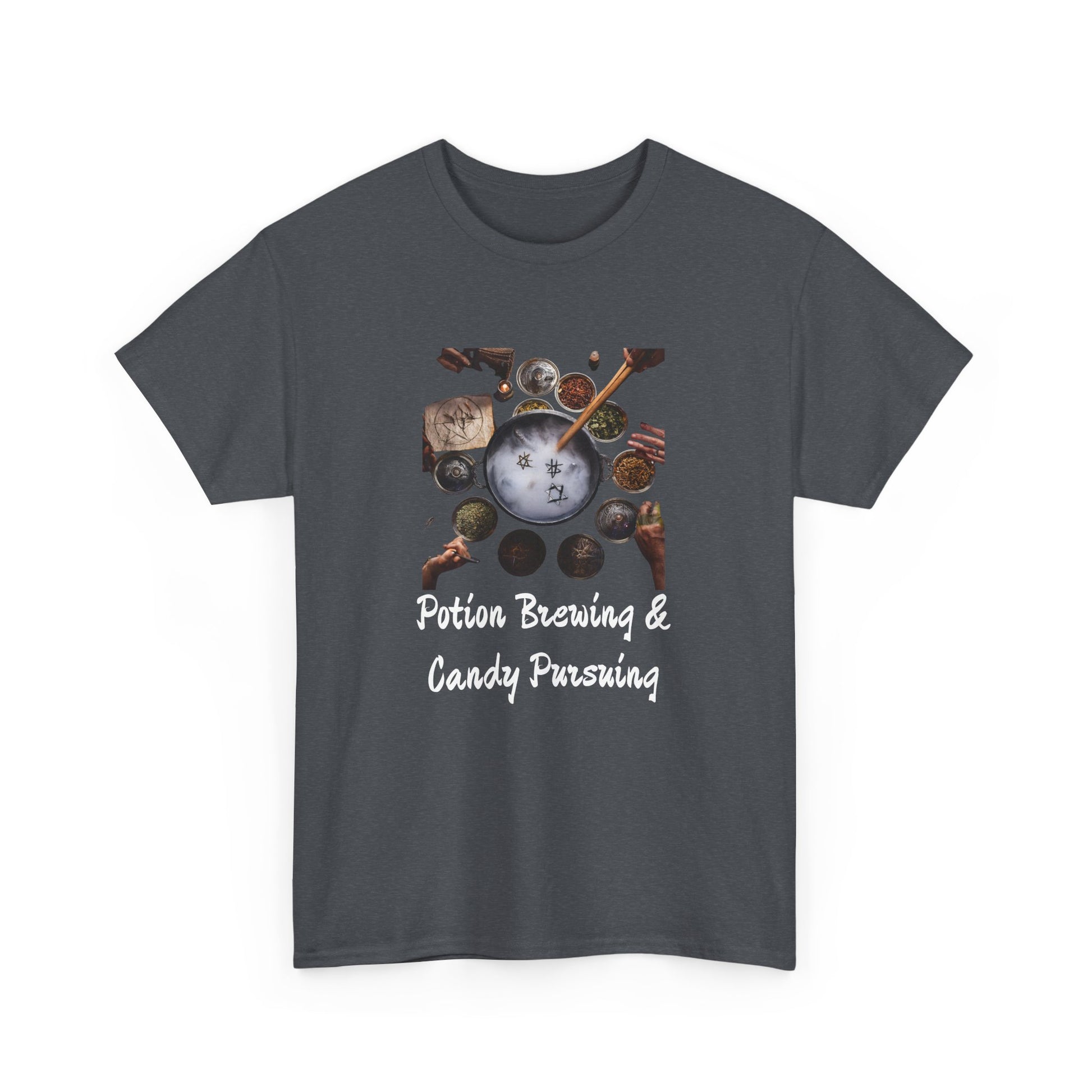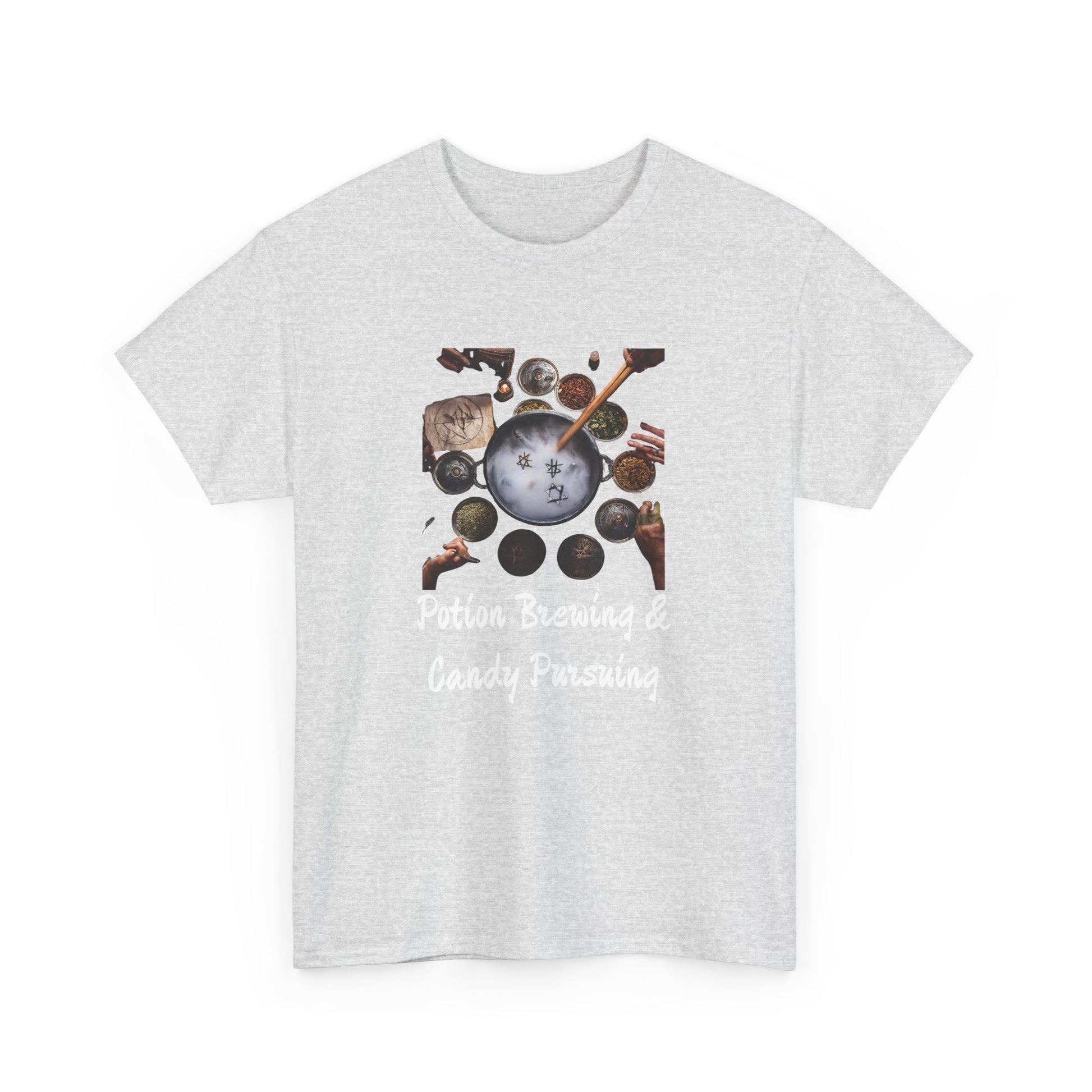 Whether you're dressing up for an outing or lounging at home, the Potions and Candy Unisex Heavy Cotton Tee is your go-to choice. Order yours today and redefine your wardrobe with this essential staple!