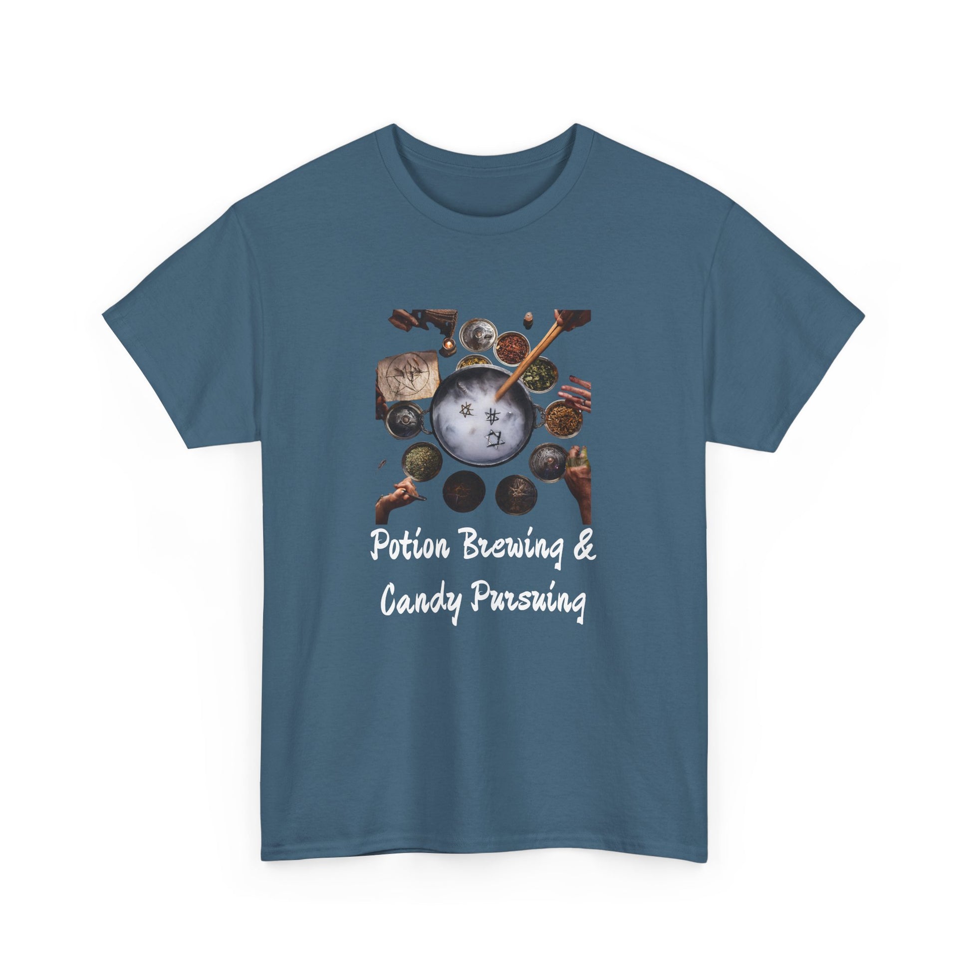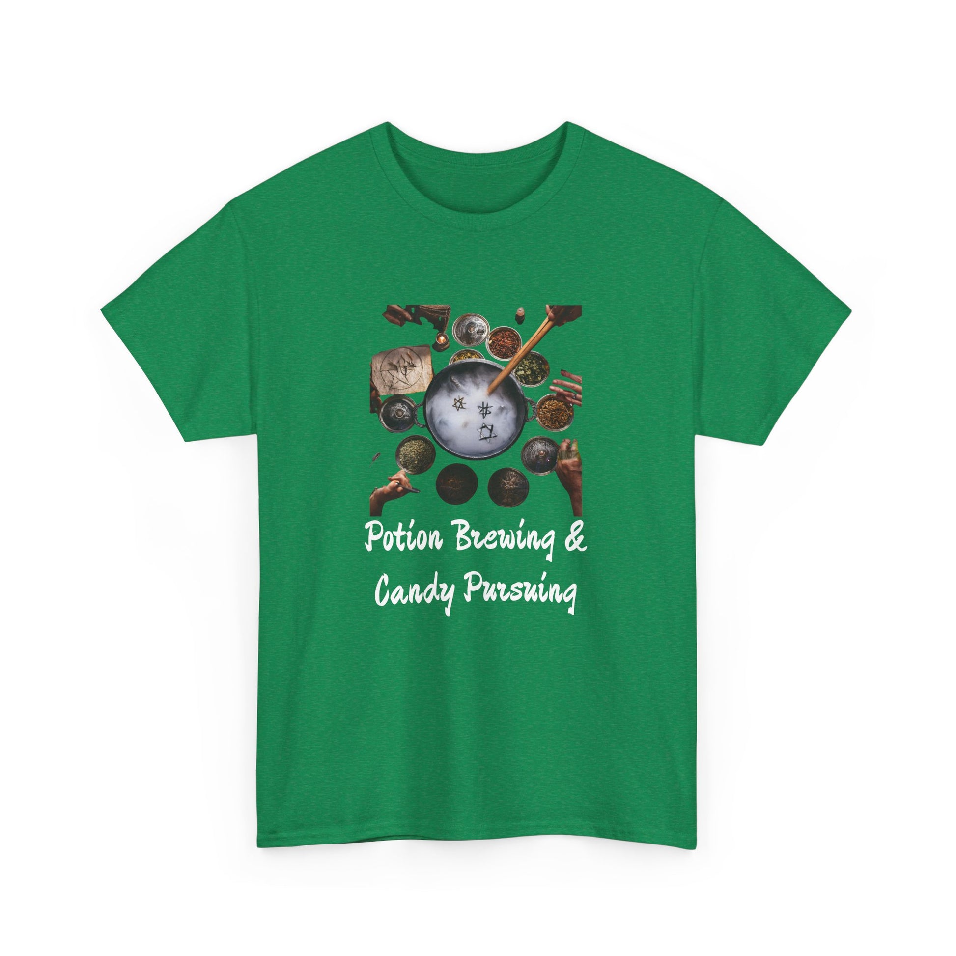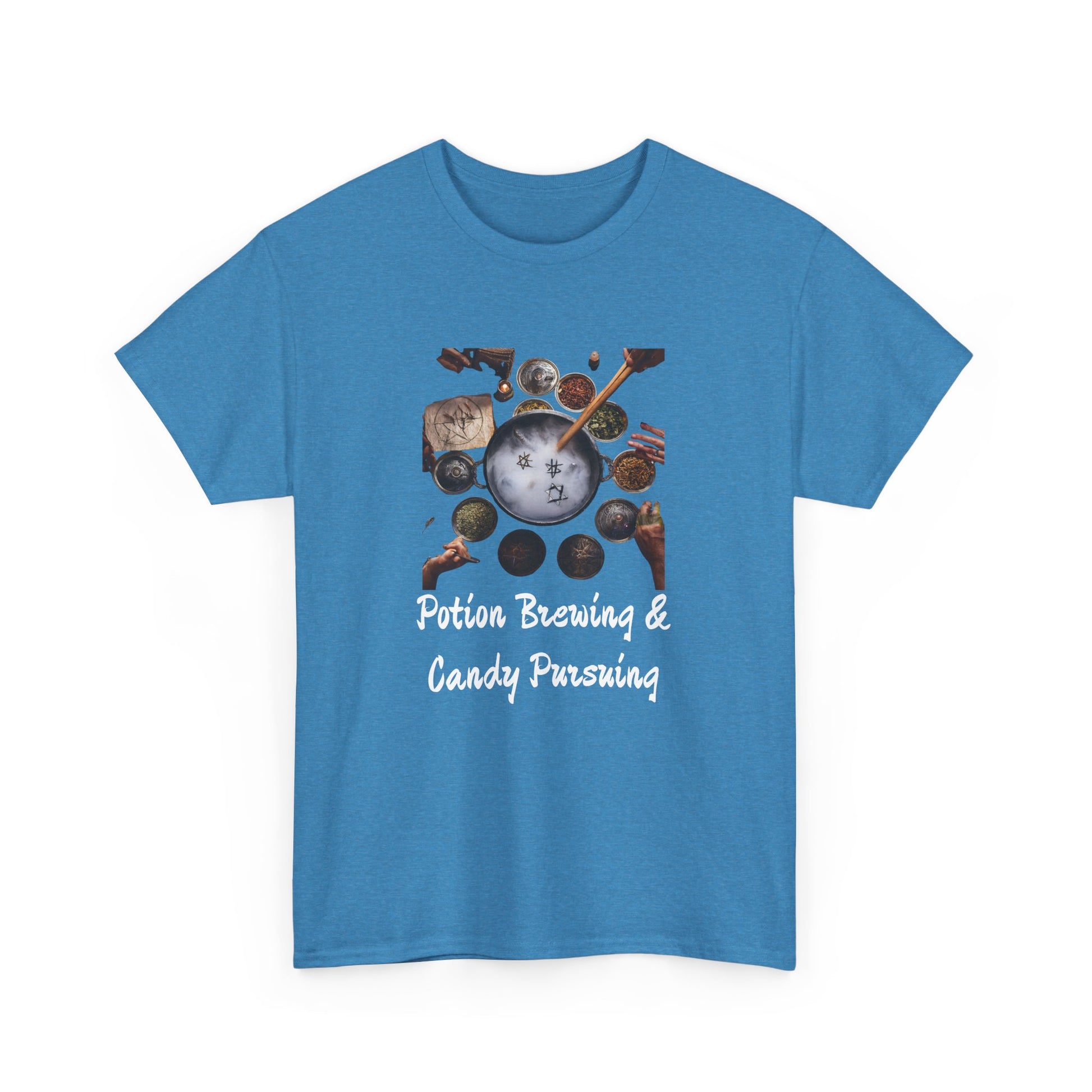 Whether you're dressing up for an outing or lounging at home, the Potions and Candy Unisex Heavy Cotton Tee is your go-to choice. Order yours today and redefine your wardrobe with this essential staple!