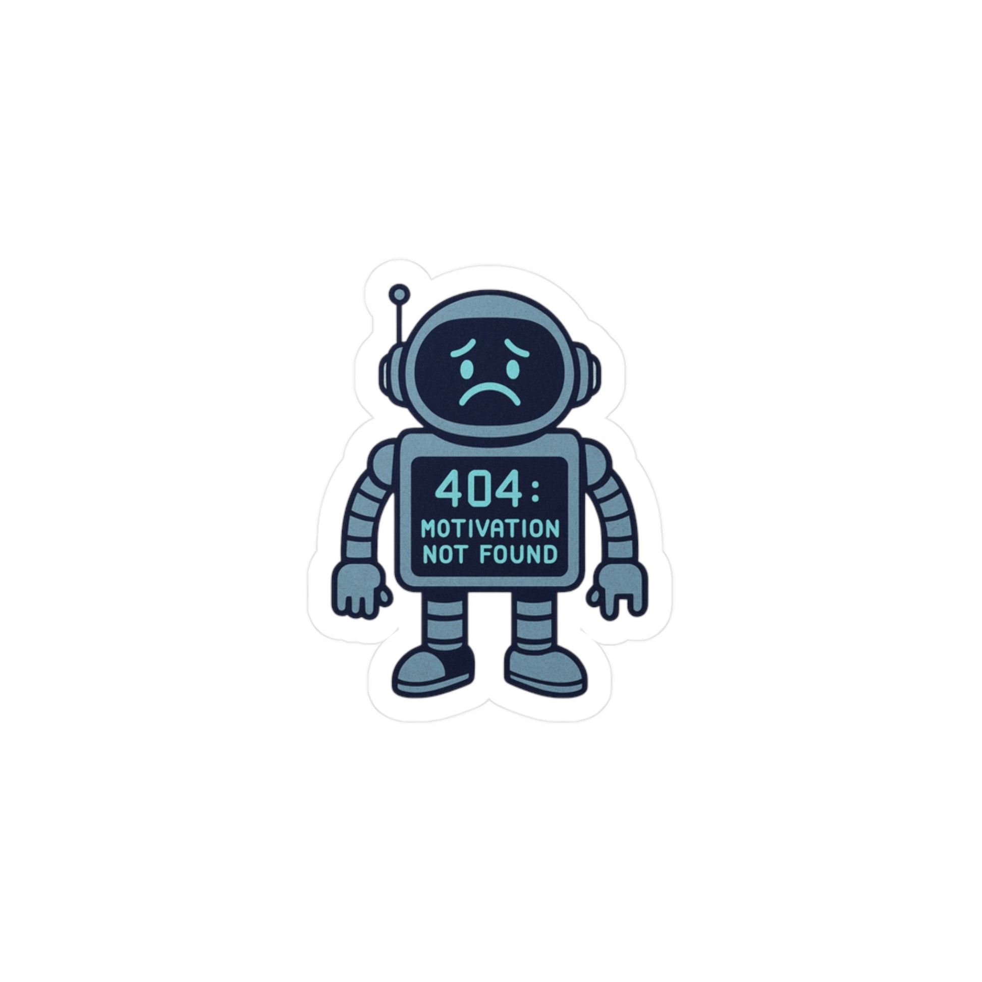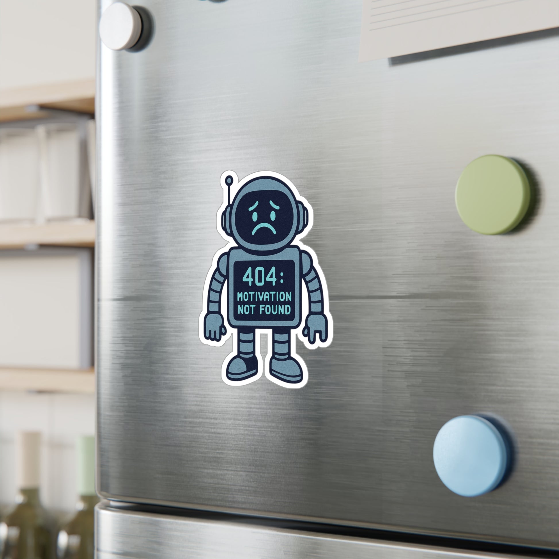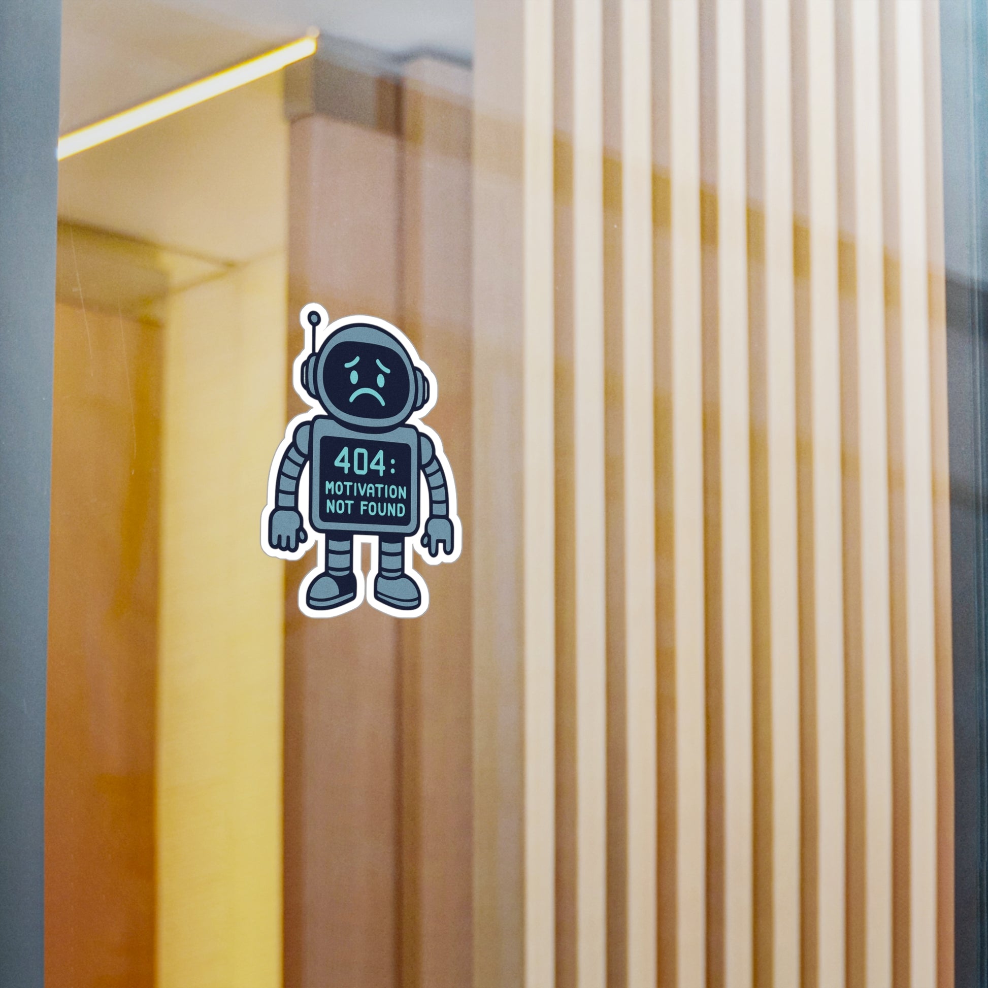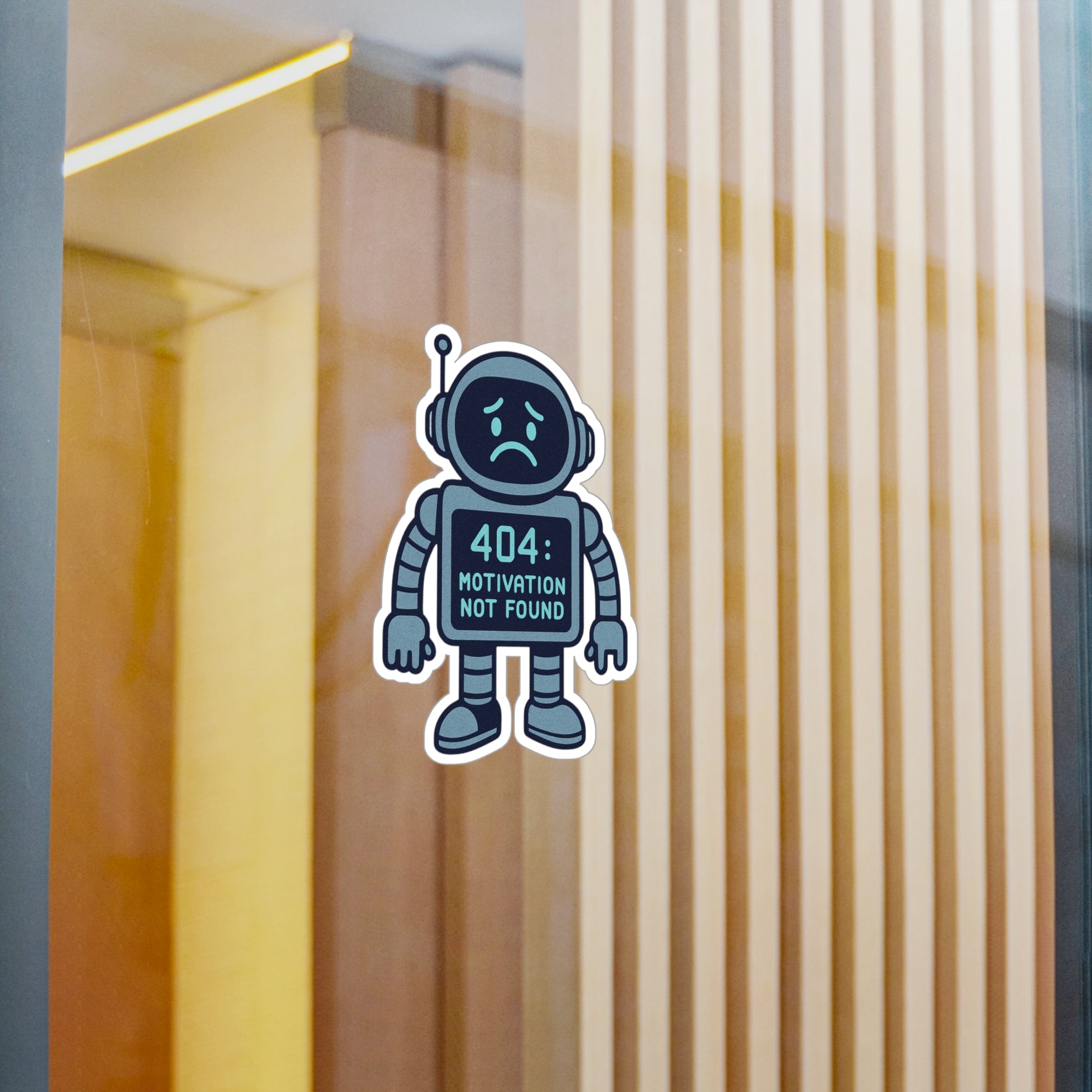 Robot Motivation Vinyl Decals, Cute Stickers for Laptop, Phone, Car, Gift for Tech Lovers, 404 Motivation Not Found Humor